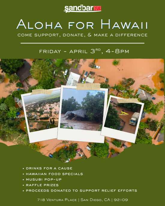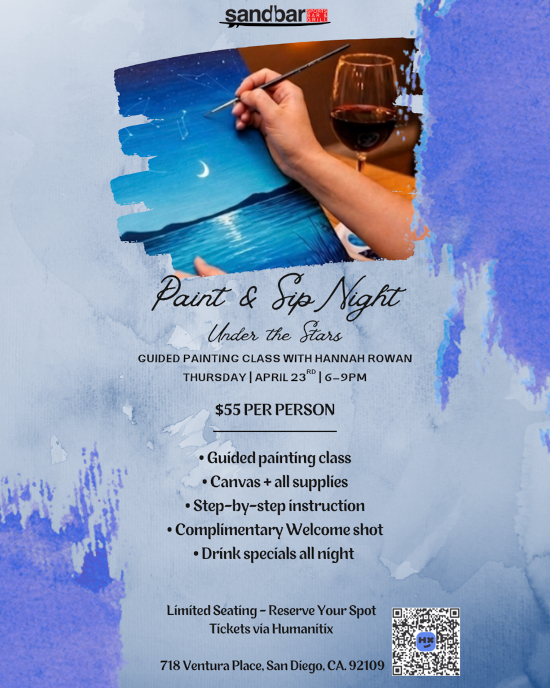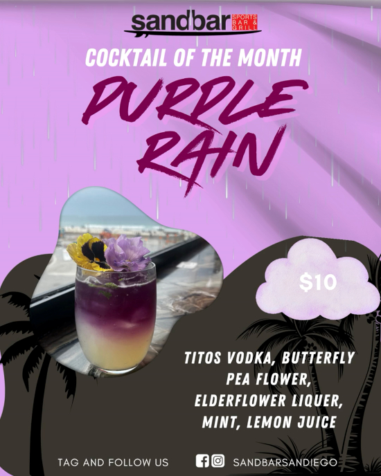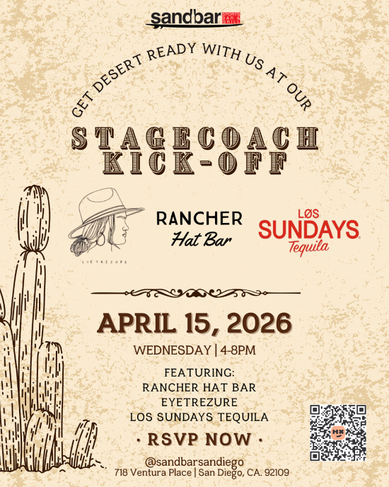 Spring Break came and went quickly, and March brought strong, consistent energy from start to finish. Between March Madness, St. Patrick’s Day, and a packed San Diego Padres Opening Day—highlighted by our Party Bus to the game—we closed out the month on a high note and look forward to carrying that momentum into April. April begins with the final stretch of the NCAA Division I Men’s Basketball Tournament, setting the tone for a busy start to the month. Guests can catch every game at Sandbar while enjoying $6 Long Drink cans and $25 buckets throughout March Madness, with the National Championship Game taking place on Monday, April 6th. This month’s cocktail, Purple Rain, is a vibrant and refreshing addition to the menu. Made with Tito’s vodka, butterfly pea flower, elderflower liqueur, mint, simple syrup, and lemon juice, it delivers a light, floral profile with a bright citrus finish and a visually striking presentation—well suited for the spring season. ![]() Aloha for Hawaii Fundraiser | April 3 (4PM–8PM) ![]() Get Stagecoach Ready | April 15 (4PM–8PM) ![]() Paint & Sip Under the Stars | April 23 (6PM–9PM) ![]() Festival & Sports Season in Full Swing At the same time, the sports calendar stays full with MLB season underway, NBA and NHL playoffs beginning mid-month, and the NFL Draft taking place April 23rd–25th. Sandbar will continue to provide full coverage across all major events. April is shaping up to be a lively and well-rounded month, with a strong mix of events, sports, and springtime energy. With a full calendar ahead and beautiful weather on our side, we look forward to welcoming guests in and continuing the momentum as we head toward summer. |